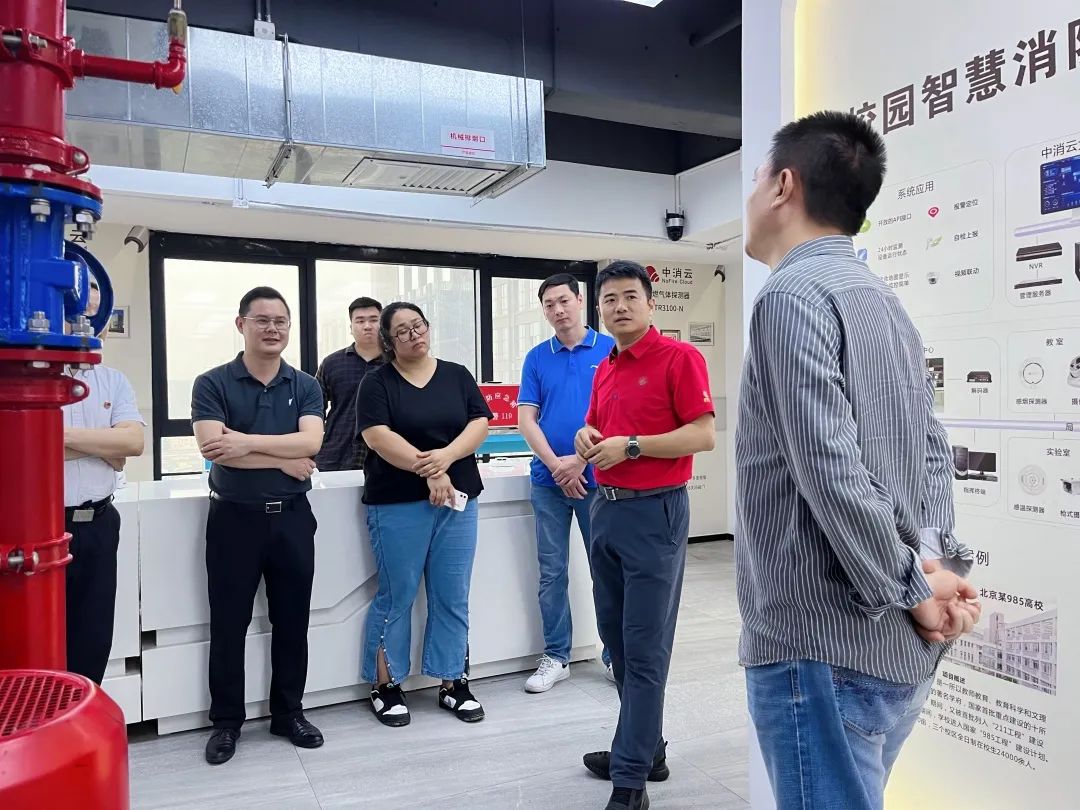 廣州市機電技師學院培訓鑒定處主任盤亮星、機電裝備產業系主任張富建、培訓鑒定處副主任裴蓓、機電裝備產業系副主任林積厚、機電裝備產業系招生就業指導老師黃建珠、機電裝備產業系消防工程技術專業老師陳晶晶、學院消防培訓中心老師張倩倩、學院消防培訓中心老師林文捷一行參觀了我司的智慧消防預警平臺、監控中心及真實模擬還原的消防設施等,并就雙方未來的合作召開會議交流。