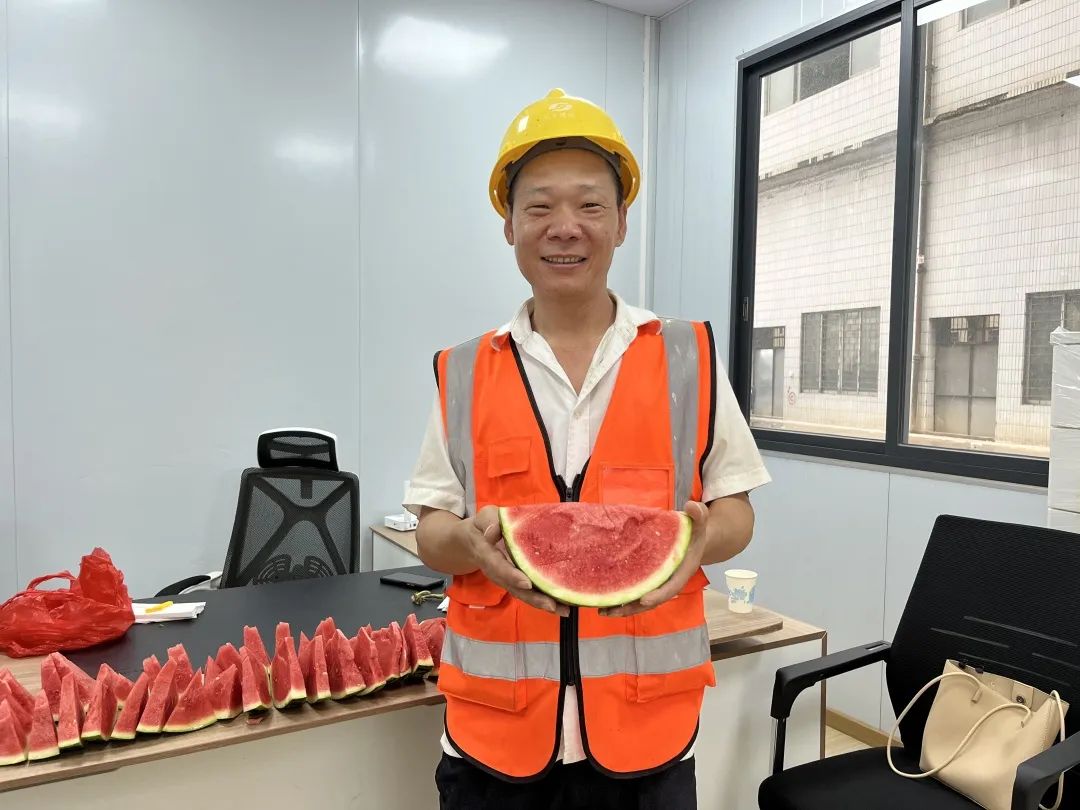 帶著粽子、飲料和西瓜到工地